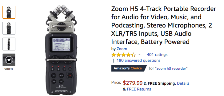 Zoom H5 Portable Recorder—USB Audio Interface, Battery Powered